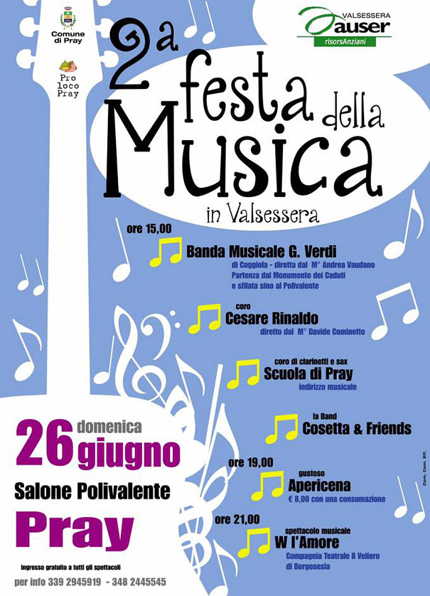 PROGRAMMA FESTA DELLA MUSICA 2016 IN COLLABORAZIONE CON L'ASSOCIAZIONE AUSER E PRO LOCO